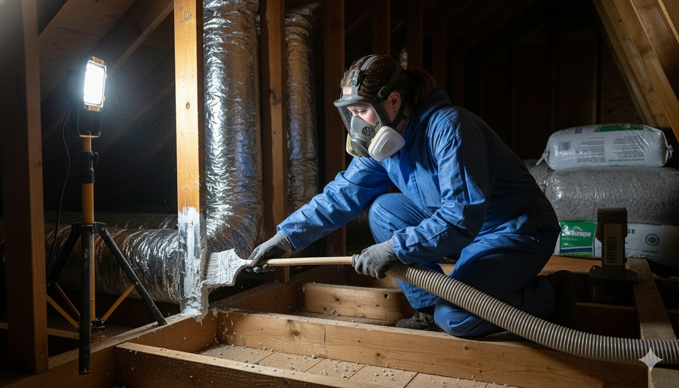 Targeting and Preparation: Technicians access the ductwork, primarily focusing on joints, seams, and connections in the attic, crawlspace, and unfinished basement. The areas to be sealed are typically cleaned of dust and debris to ensure the sealant adheres properly.